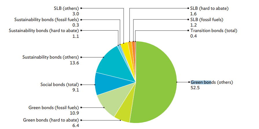 Sustainable Bonds to Support Transition Activities in Developing Asia (%), cumulative from 2019 to 2024 - Source ADB