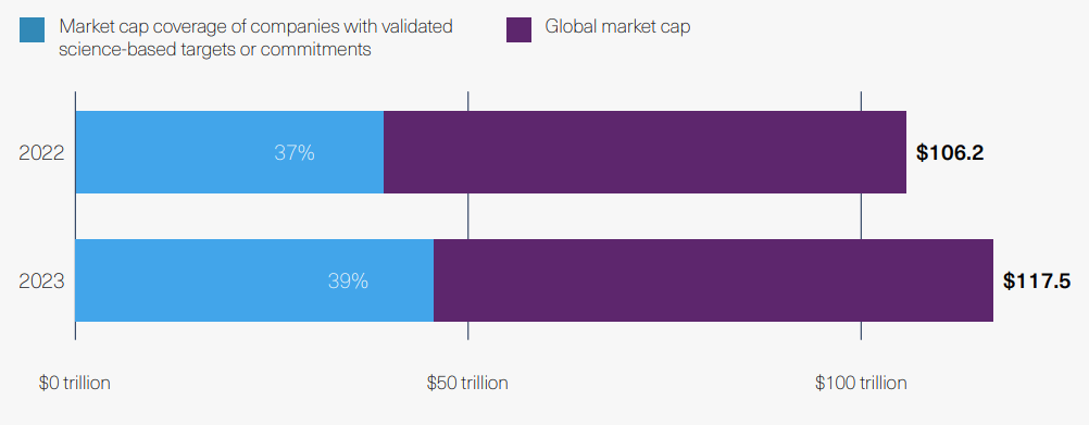 With tremendous growth, by 2024, over 6,000 companies had committed to SBTi targets, collectively representing more than $45 trillion in market capitalization.